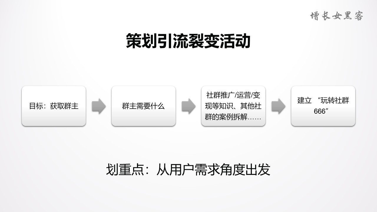 用戶聽了課就走,只留存到平臺這一級,下次如果還需要做類似的活動,這部分用戶還是觸達(dá)不了。而社群,就可以承載這些用戶,幫助建立自己的流量池,下次活動他們就都在活動曝光范圍內(nèi),你可以繼續(xù)影響他們,增加啟動量。