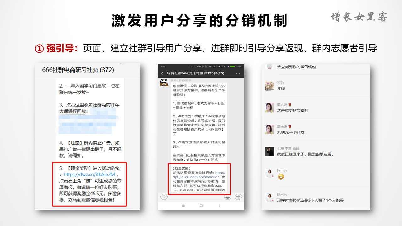 但是只是這樣是遠(yuǎn)遠(yuǎn)不夠的,裂變速度不夠快,所以我就想,怎么樣才能讓這些已經(jīng)進(jìn)群的人再幫我去做推廣呢?