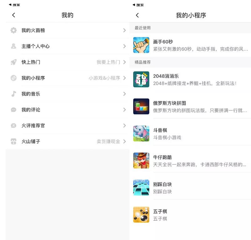 ▲抖音小程序收藏功能、小程序桌面(位于抖音“我的-三-小程序”)