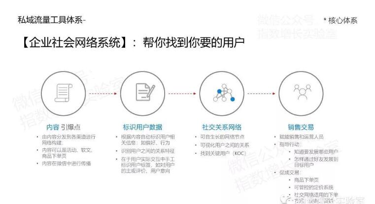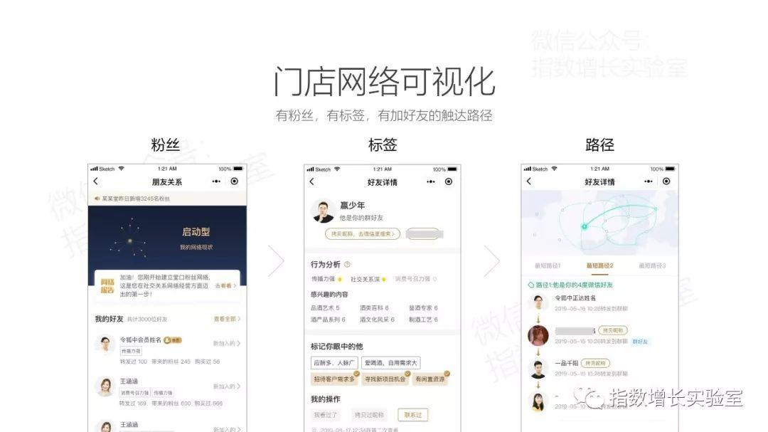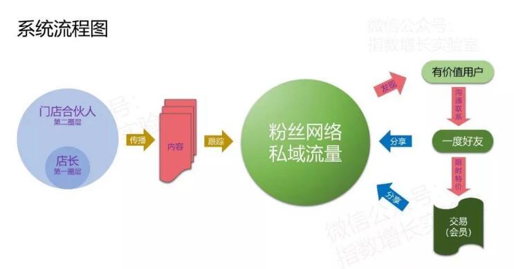 整個私域流量體系從現(xiàn)有的門店店主和門店的忠實會員出發(fā),通過內(nèi)容分享和傳播機(jī)制,在傳播過程中不斷跟蹤和繪制門店的粉絲網(wǎng)絡(luò)的私域流量,并從中找到關(guān)鍵節(jié)點(diǎn),即發(fā)現(xiàn)有價值的用戶。
