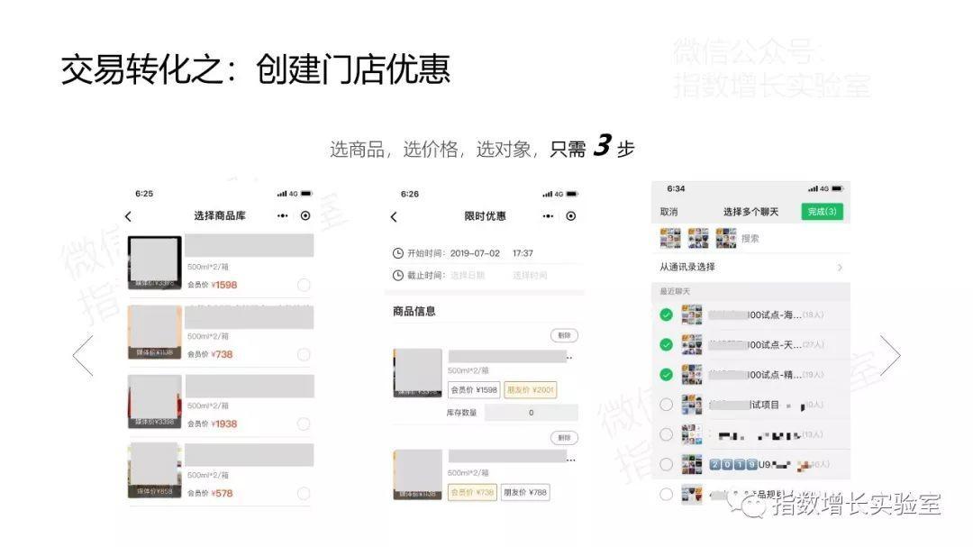注意這里的過程全部是店長或店員真實的微信號,并且通過小程序去發(fā)展真實的用戶。這些真實用戶不是泛流量,而是有價值的潛在用戶或關(guān)鍵節(jié)點(diǎn)用戶或付費(fèi)用戶。